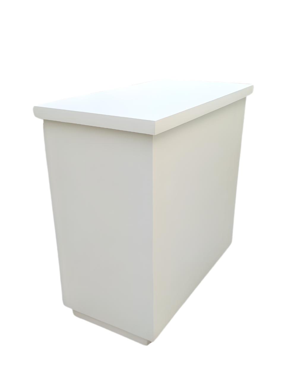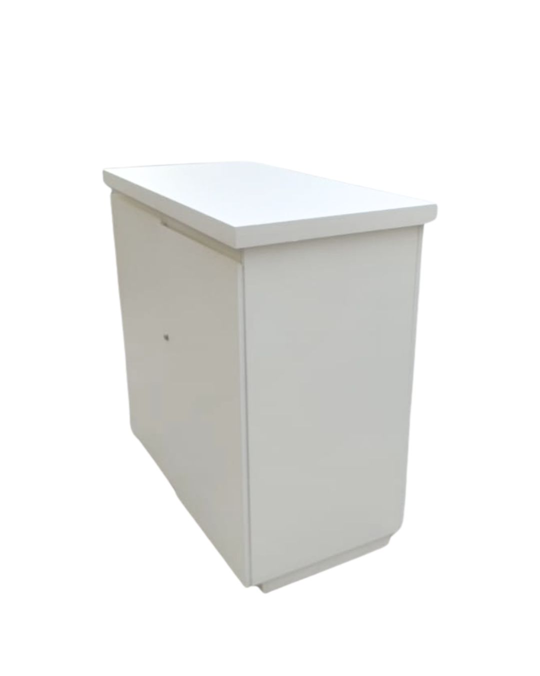 Balcão de atendimento em Madeira ,com uma prateleira interna e portas com chave.