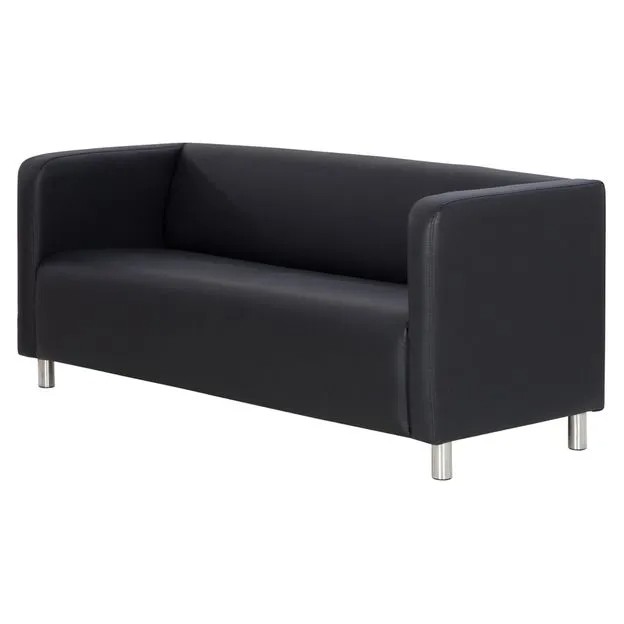 Sofá de 2 lugares em metal cromado com assento e encosto em espuma revestida com couro sintético